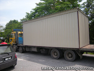 Berikut gambar gambar kabin... dibawa masuk dengan loader, beberapa dahan pokok kena cantas kerana menghalang dan dibawa turun dengan kren.